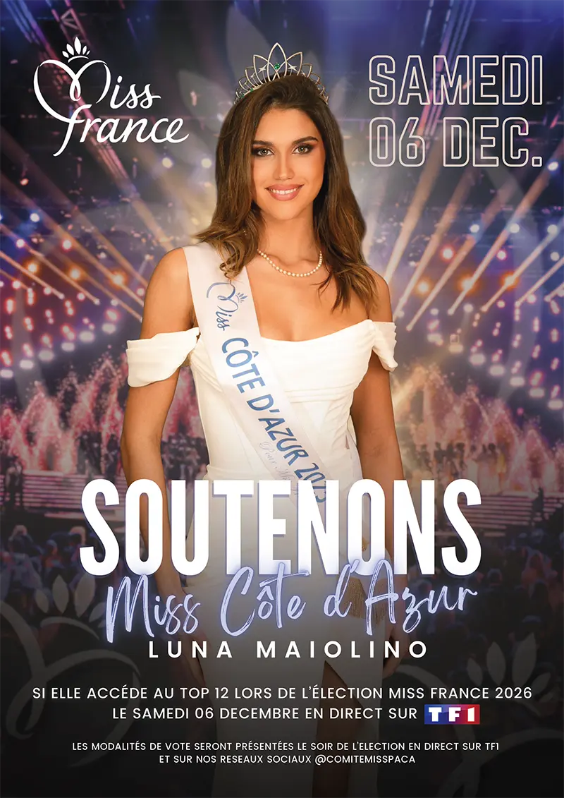 Et parmi elles, c’est Luna Maiolino, notre Miss Côte d’Azur élue à Fréjus en juillet, que nous invitons à soutenir en priorité !